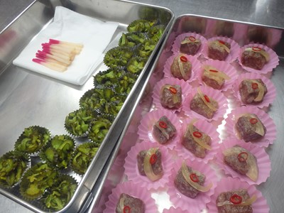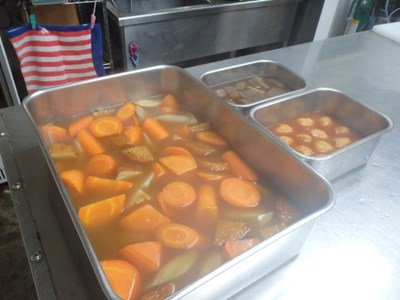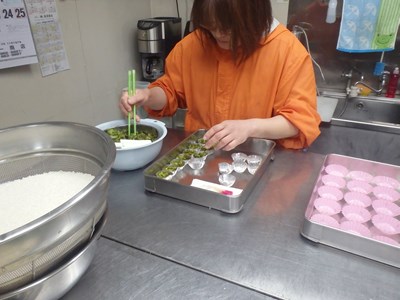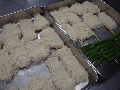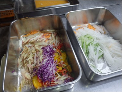 サラダ素麺の野菜(写真 左)と、刺身のつま(同 右)を包丁し、実働2時間足らずで、終えることが出来ました。