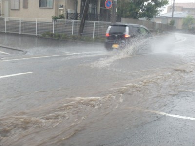 店の前が、生簀と化していましたが、少し激しい雨が降ると、側溝が狭いので、こうなることもしばしばで、特に問題もなく、出掛けることにしました。