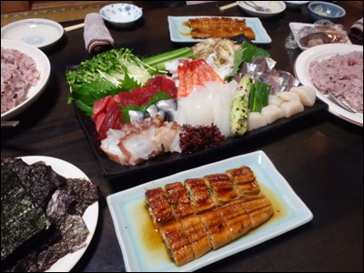 準備して来た手巻き鮨を並べたら、