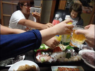 皆で、乾杯。