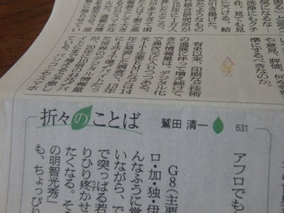 昨日の『朝日新聞』の朝刊ですが、