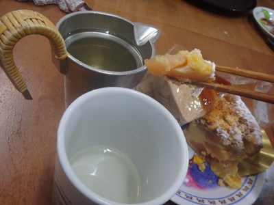 真夏でも熱燗派の自分ですので、お湯割りはどんぴしゃで、