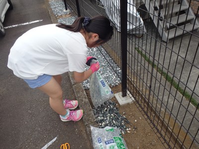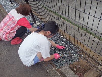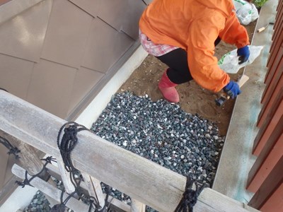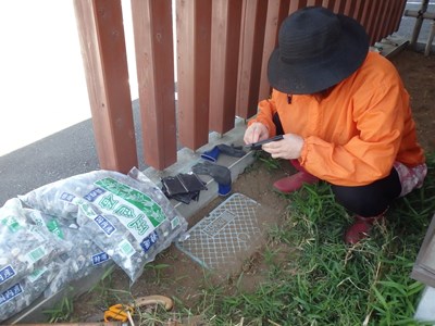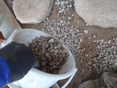砂利を袋から取り出し、