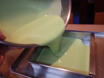 先付のうすい豆腐(グリンピースで作った豆腐)を仕込んだり、