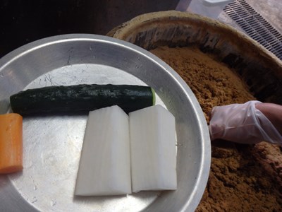 糠漬にする大根、胡瓜、人参を用意し、