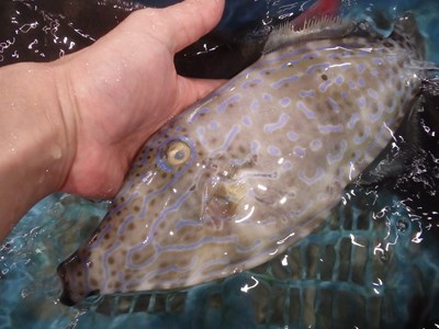 見慣れないながらも、皮剥(カワハギ)や馬面剥(ウマヅラハギ)に似た魚が入荷しており、