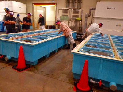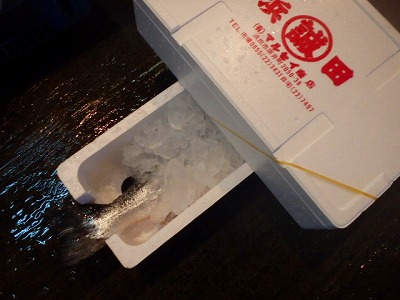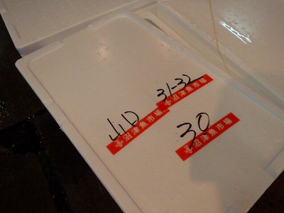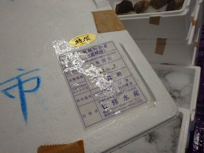 そのまま水槽へ。その他の荷物も、仕込みを出来るように、段取りをし終えました。最後に、宅配便で届いた鮪を取り出したのですが、今日のは、