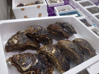 貝類を扱う売場でした。9月に入ったこともあり、夏が旬の岩牡蠣の入荷も少なくなっていましたが、