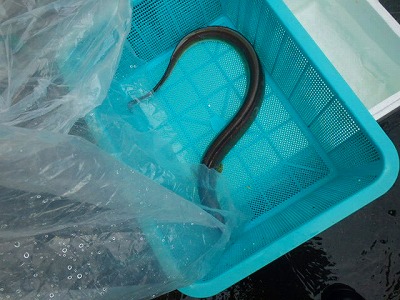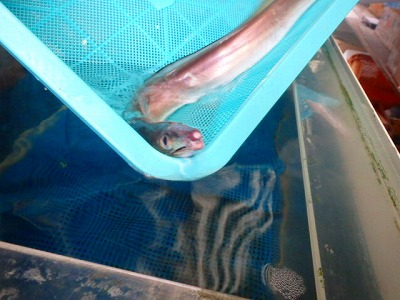 これまで、色んな魚を見てきましたが、この魚は初めてで、名前すら分からなかったので、自分がふぐや鱧を仕入れている三重県熊野の魚屋さんに、メールを転送し、正解を待つこと数分、この魚が、“ダイナンウミヘビ”なる魚というこことが分かりました。