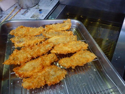 自分は、骨切りをしながら、女将兼愛妻(!?)の真由美さんに、揚げてもらい、腹骨の部分も、