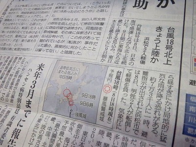 『佳肴 季凛』のある富士市では、早朝から昼過ぎにかけて、雨が強く降っただけで、日本海に抜けた台風18号は、温帯低気圧に変わったとのことでした。