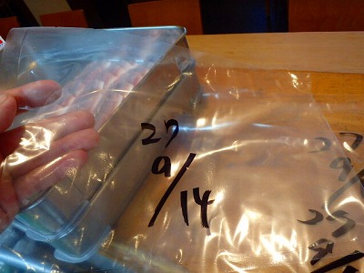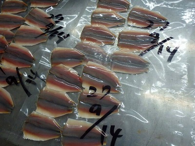 真空パックしてから、冷凍しておきました。このようにしておけば、天候不順だったり、市場が休みで、入荷が無い時や、急なご予約の時に、対応することが出来ます。