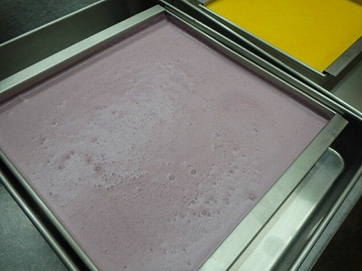 バットの左側のものだけを仕込みました。一枚ずつ、塩をした盆ざるに乗せ、