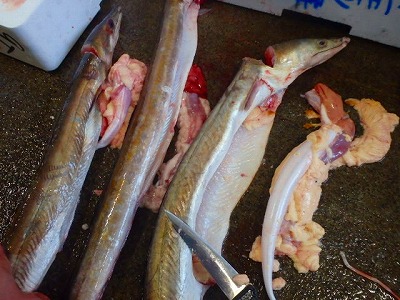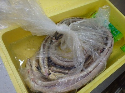 このようにしてあるのは、鱧は、悪食ゆえ、腹の中に餌が残ったまま死んでしまうと、その臭いが、身についてしまい、それこそ煮ても焼いても、使い物にならなくなってしますからです。