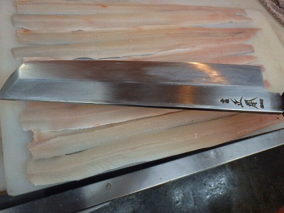 鱧の下拵えには欠すことの出来ない骨切りを、