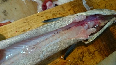 腹を裂いて、腸(はらわた)を抜いてあります。