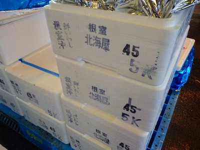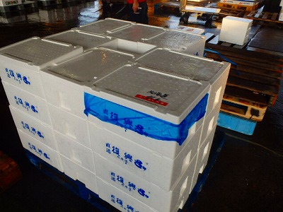 冷凍ものですので、解凍してから、仕込むのですが、1ケースに、12キロ、約100本入っており、