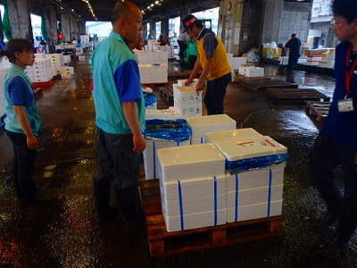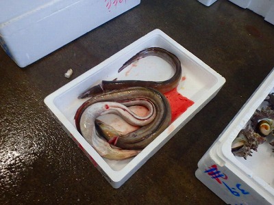 大分県産の鱧を、3本仕入れました。そして、これら以外にも、冷凍ものなどを仕入れ、市場から帰ることにしました。