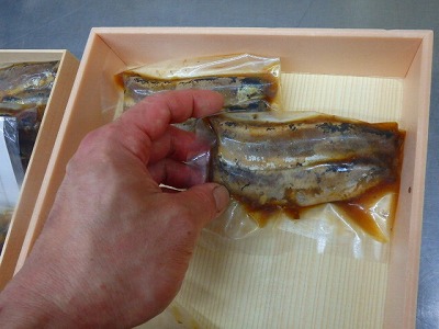 【鰯の丸煮】の包装をしてくれ、自分は、