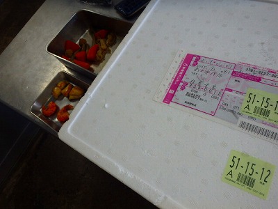 ダンベと呼ばれる容器に、入れられていきました。この後、セリにかけられ、箱詰めされて、再び売場に並ぶのは、明日になります。
