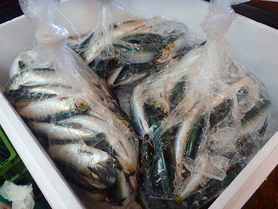 中には、真鰯が、10キロほど入っており、その数は、約100本でした。そのうちの約半分の真鰯の大きさは、