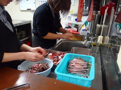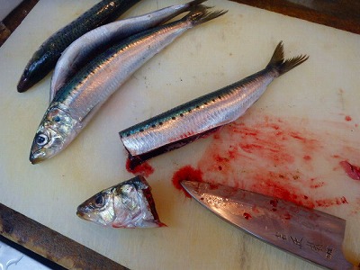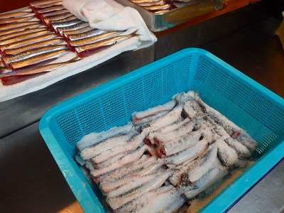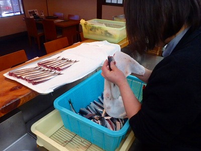 お弁当の後は、富山県氷見産の真鰯の下拵え