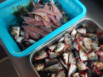 この2つのサイズよりも小さいものが、5本と、豆鯵が2本と、鰯は鰯でも、別の種類のうるめ鰯が、1本いまいした。