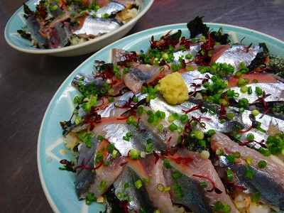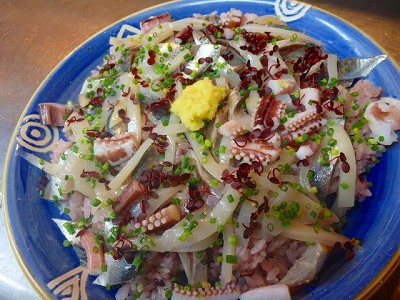 また、先日作ったのが、富山県氷見産の烏賊、その下足、鰯を使った丼でした。