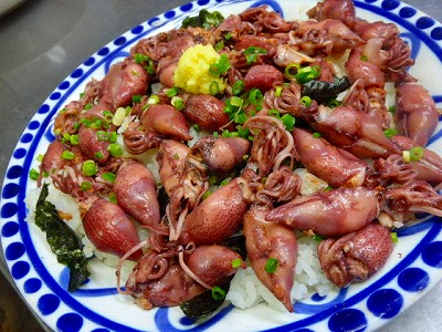 “蛍烏賊丼”にしました。氷見と同じく、富山湾産のもので、蛍烏賊の入荷があるのは、5月半ばまでぐらいですので、それこそ、今が旬の味です。