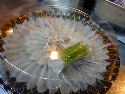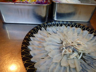女将兼愛妻(!?)の真由美さんに取り換えてもらっている間、自分は、ふぐ皮を湯引きし、終わった頃には、