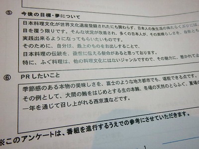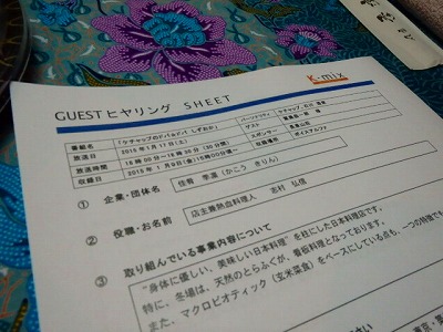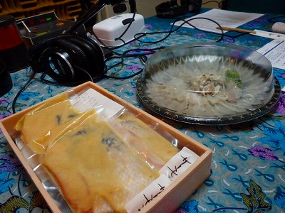 ヒアリングシートと番組のスケジュールを確認し終えたら、持参したふぐ刺と、
