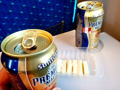 ホームに着くと、緊張感だけでなく、熱き想いを語ったこともあり、さらに、一気に解放感が沸き上がって来たので、ビールを買い求めてしまいました。座席に着くと、