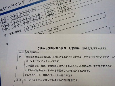 静岡県内が放送エリアのFM局【K-mix】の番組『ケチャップのドバ☆ドバしずおか』(土曜日 18:00~18:30)に、ゲスト出演し、その収録に、行くからです。