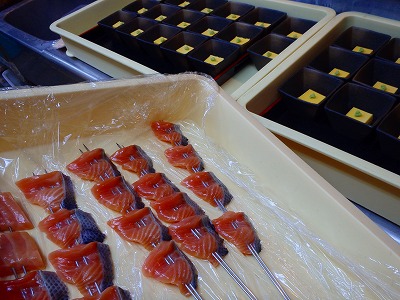 焼物の“サーモンの西京焼”を焼く準備に、取り掛かりました。その後、