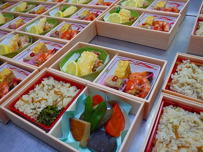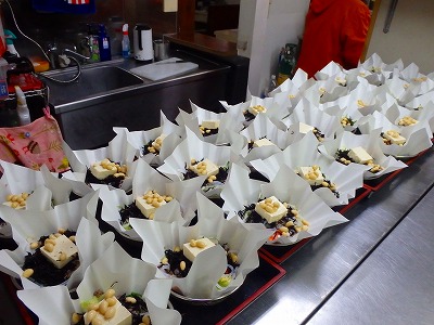 このように、仕上がりました。お弁当の仕事が、完全に終わると、団体のお客様のお料理の準備を、再開し、