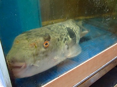 と、ここで終わるには、絵的に面白味が欠けるので、今日の様子を、少々お話しします。今朝は、沼津の魚市場に仕入れに行き、南伊豆・妻良産のあかめふぐを、