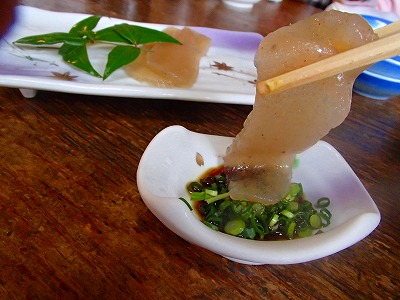 皆で乾杯。手作り蒟蒻の刺身に始まり、