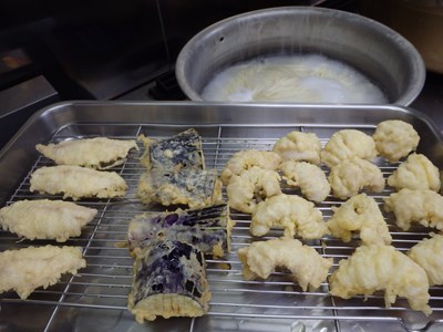 鱧は淡白でありながらも、味わいが深く、特にクセもないので、色んな料理に仕立てることが可能ですが、賄いですので、手軽に用意出来ることも大事ですので、賄いで食べる時は、天ぷらにすることが殆どです。