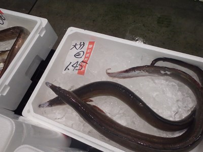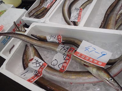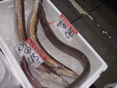 今朝は、沼津の魚市場に仕入れに行って来たのですが、構内の売場に行く前に、注文しておいた鱧を受け取るため、