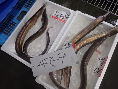 昨日の時点で注文しておいた山口産の鱧(0,5キロ)が1本ありましたが、[47ー9]というのは、自分の買い番です。