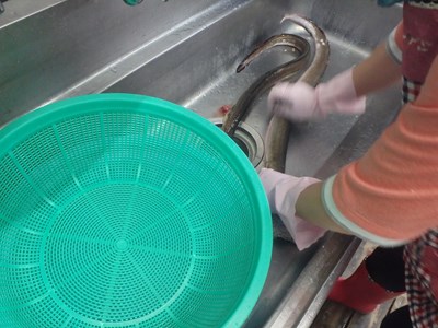落ち鱧のヌメリを取ってくれ、終わったら、