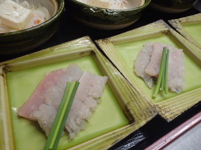 お昼の鱧料理、いわゆる昼鱧のお客様にお出ししましたが、鱧以外は、南鮪(ニュージーランド)、小肌(佐賀)、湯葉でした。