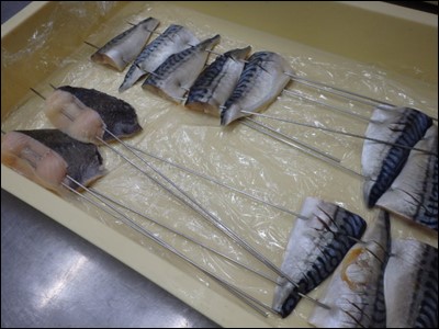 週末ということで、明日の焼物でお出ししする西京漬に仕込んだ鯖や銀鱈に、