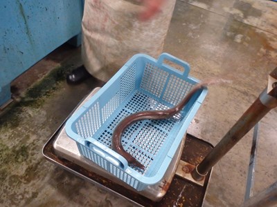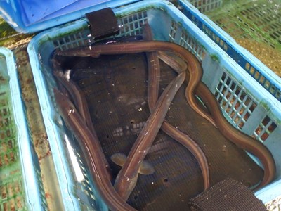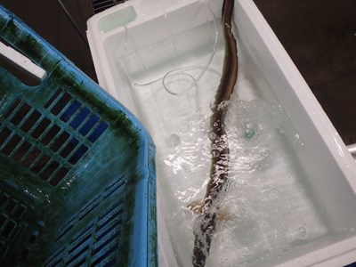 籠に入った鱧を、