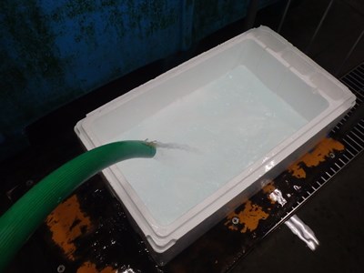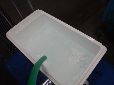 発泡スチロールに海水を入れ、