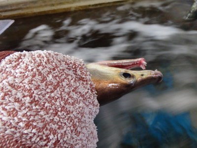 鱧は獰猛な性格ゆえ、興奮させると、暴れるだけでなく、噛み付いたりすることもあるので、注意が必要です。