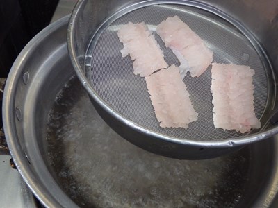 海水程度の濃さの塩水につけ、しんなりさせておきます。