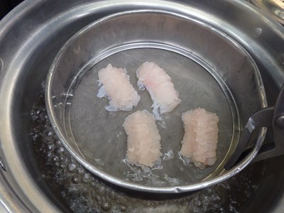 ヒントになったのは、鱧の落とし身の天ぷらで、皮と身を分けてから、