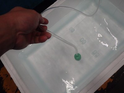 発泡スチロールに、海水を入れ、ブクブクをセットしたら、