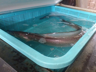 活きた鱧が、沼津の魚市場に入荷するのは、今季初にして、例年に比べ、半月以上遅れてのことで、自然相手ゆえ、こういうことはよくあることですが、今年は、中国産が入荷して来ないことも、その原因の一つでもあります。